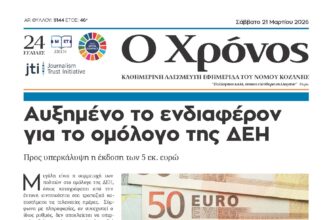 3-3-2016 Τελευταία ενημέρωση: 2 Οκτωβρίου 2023 15:05 από Χρόνος Κοζάνης Share SHARE Μοιραστείτε την είδηση Facebook Twitter Αντιγραφή συνδέσμου Εκτύπωση ΡΟΗ ΕΙΔΗΣΕΩΝ Πρωτοσέλιδο Σαββάτου 21 Μαρτίου 2026 Ο Ε.Ο.Σ. Κοζάνης διοργανώνει ορειβατική εξόρμηση στον Τίταρο αυτή την Κυριακή Ενημέρωση για τις εξετάσεις και τη λειτουργία του ΔΗΜ.Ω.Σ. ΗΜ. ΓΕΛ Κοζάνης Οι βιβλιοπροτάσεις της εβδομάδας από τη «Στοά του βιβλίου» Ορατή η άρση των μέτρων κατά της ευλογιάς νωρίτερα, μετά την απάντηση του Υφυπουργού Αγροτικής Ανάπτυξης στον Π. Κουκουλόπουλο Κ. Βέττα: «Να δοθούν απαντήσεις για την έγκριση της Α.Ε.Π.Ο. για αντλησιοταμιευτικά έργα στη Βουνάσα, παρά την αντίθεση της τοπικής κοινωνίας» Κυκλοφοριακές ρυθμίσεις στην Κοζάνη την Κυριακή λόγω εργασιών του ΔΕΔΔΗΕ ΔΕΠΑ Εμπορίας: Σύμβαση της NORTH SOLAR με τον Δήμο Κοζάνης για έργα ενίσχυσης τοπικών κοινοτήτων HealthyHoops 4ALL: Τα παιδιά δίνουν ραντεβού στην Κοζάνη Παρεμβάσεις συντήρησης σε ναούς στη Νεάπολη και τη Στέρνα