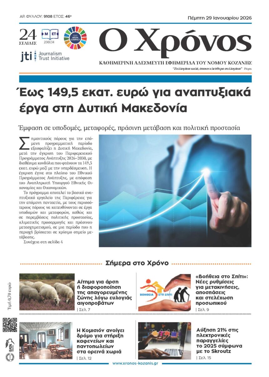 Η Δυτική Μακεδονία έχει ανάγκη από ενίσχυση της καινοτομίας που με τη σειρά της θα βοηθήσει στην επιχειρηματικότητα