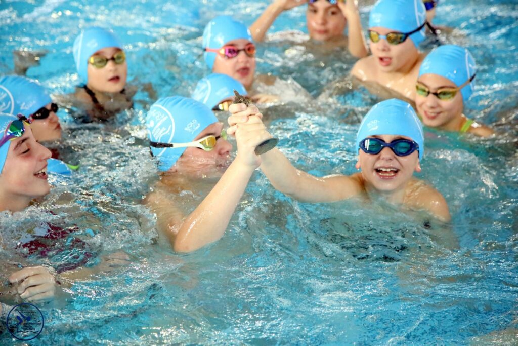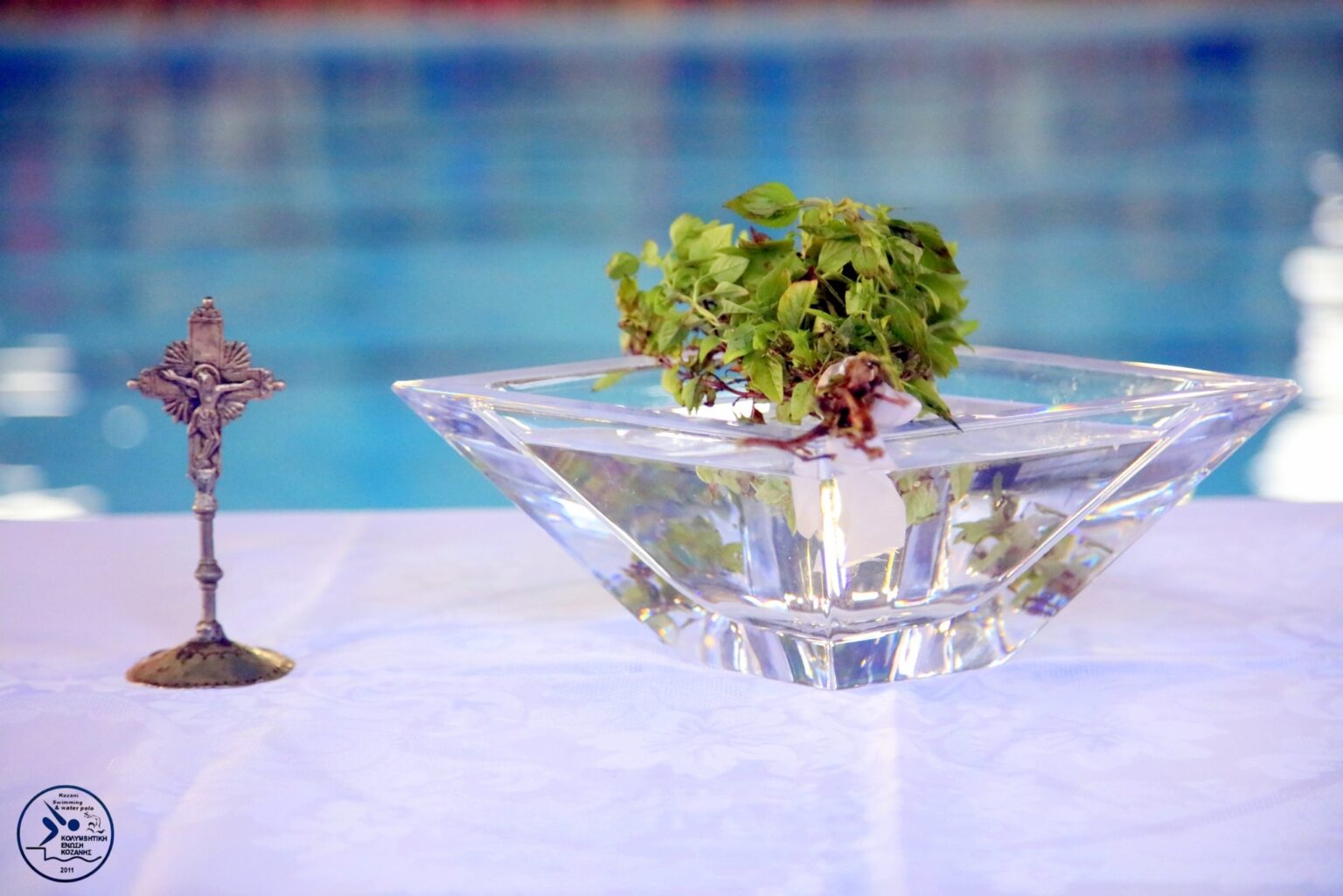 Η παρουσία γονέων και φίλων του συλλόγου δημιούργησε μια ζεστή, χαρούμενη ατμόσφαιρα, καθώς οι αθλητές τίμησαν το έθιμο πέφτοντας στην πισίνα για τον Τίμιο Σταυρό.