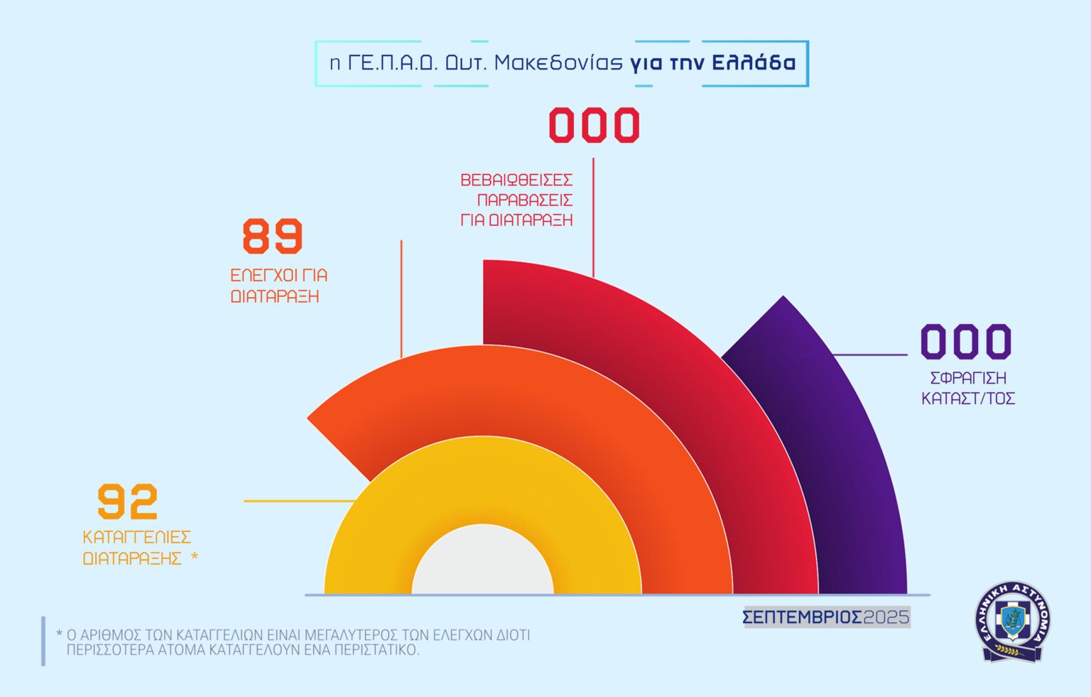 Η Γενική Περιφερειακή Αστυνομική Διεύθυνση (ΓΕ.Π.Α.Δ.) Δυτικής Μακεδονίας δημοσιοποίησε τα στοιχεία απολογισμού για τον μήνα Σεπτέμβριο 2025, καταγράφοντας σημαντικές επιχειρησιακές δράσεις και ελέγχους σε όλη την Περιφέρεια.