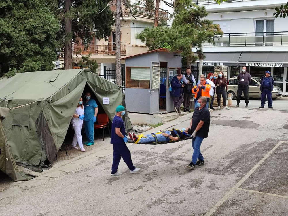 Ευρείας κλίμακας διυπηρεσιακές ασκήσεις προσομοίωσης εκκένωσης και προστασίας της δημόσιας υγείας, πραγματοποιήθηκαν στο Γενικό Νοσοκομείο Κοζάνης «Μαμάτσειο», το πρωί της Παρασκευής. Οι ασκήσεις έγιναν με την παρουσία στελεχών του τμήματος ασκήσεων και ετοιμότητας του Κέντρου Επιχειρήσεων Υγείας του ΕΚΑΒ Αθήνας και Θεσσαλονίκης (ΚΕΠΥ-ΕΚΑΒ), στο πλαίσιο της θεσμοθετημένης αρμοδιότητάς τους από το Υπουργείο Υγείας για τον έλεγχο και την αξιολόγηση της ετοιμότητας των Υγειονομικών Σχηματισμών στην αντιμετώπιση εκτάκτων καταστάσεων & κρίσεων.