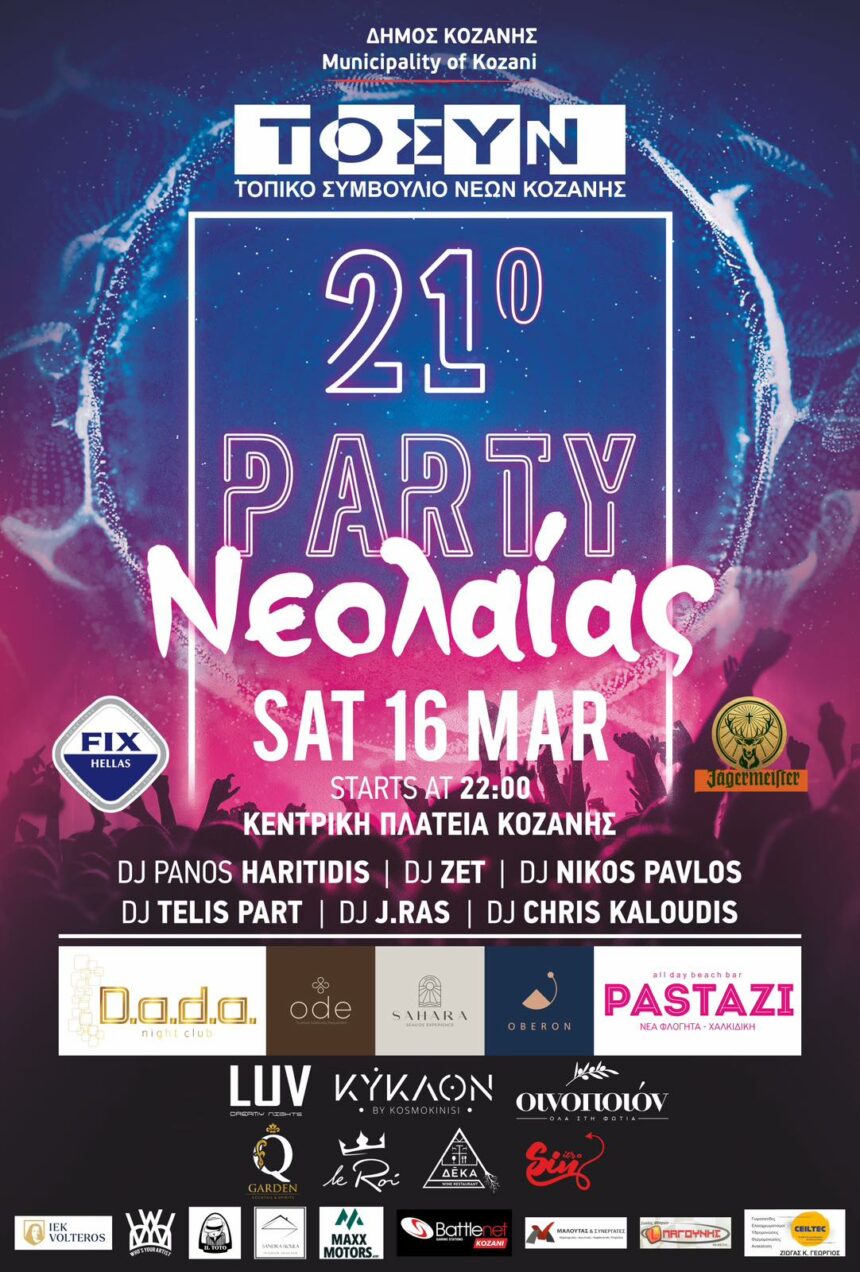 Το Party Νεολαίας θα ξεκινήσει στις 10 το βράδυ στην κεντρική πλατεία Νίκης της Κοζάνης, όπου η μουσική και ο χορός θα έχουν τον πρώτο λόγο, στο μεγάλο αυτό αποκριάτικο…