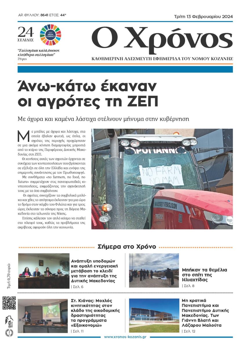 Στο δημοτικό συμβούλιο το θέμα Στο μείζον θέμα των αγροτών αναφέρθηκε ο επικεφαλής της δημοτικής κίνησης «Κοζάνη – Τόπος Να Ζεις» κ. Χάρης Κουζιάκης, στο δημοτικό συμβούλιο της Δευτέρας, και…