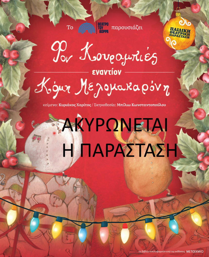 Η παράσταση "ΦΟΝ ΚΟΥΡΑΜΠΙΕΣ εναντίον ΚΟΜΗ ΜΕΛΟΜΑΚΑΡΟΝΗ", η οποία ήταν προγραμματισμένη για σήμερα Σάββατο ακυρώνεται λόγω των μπλόκων στην Εθνική Οδό. Όσοι έχουν προμηθευτεί εισιτήρια από το ταμείο του κινηματογράφου,…