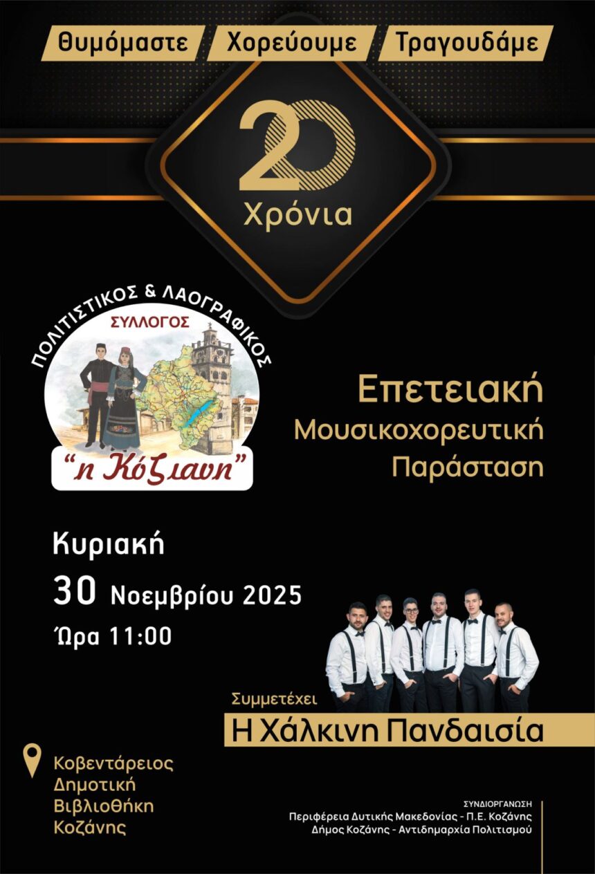 Ο Φιλοπρόοδος Σύλλογος Κοζάνης πραγματοποιεί το κλείσιμο της τριακοστής πολύ σημαντικής μουσικής χρονιάς, προσκαλώντας όλες και όλους σ’ ένα μοναδικό και ιδιαίτερο ρεσιτάλ για φωνή και κιθάρα, με τους ξεχωριστούς…