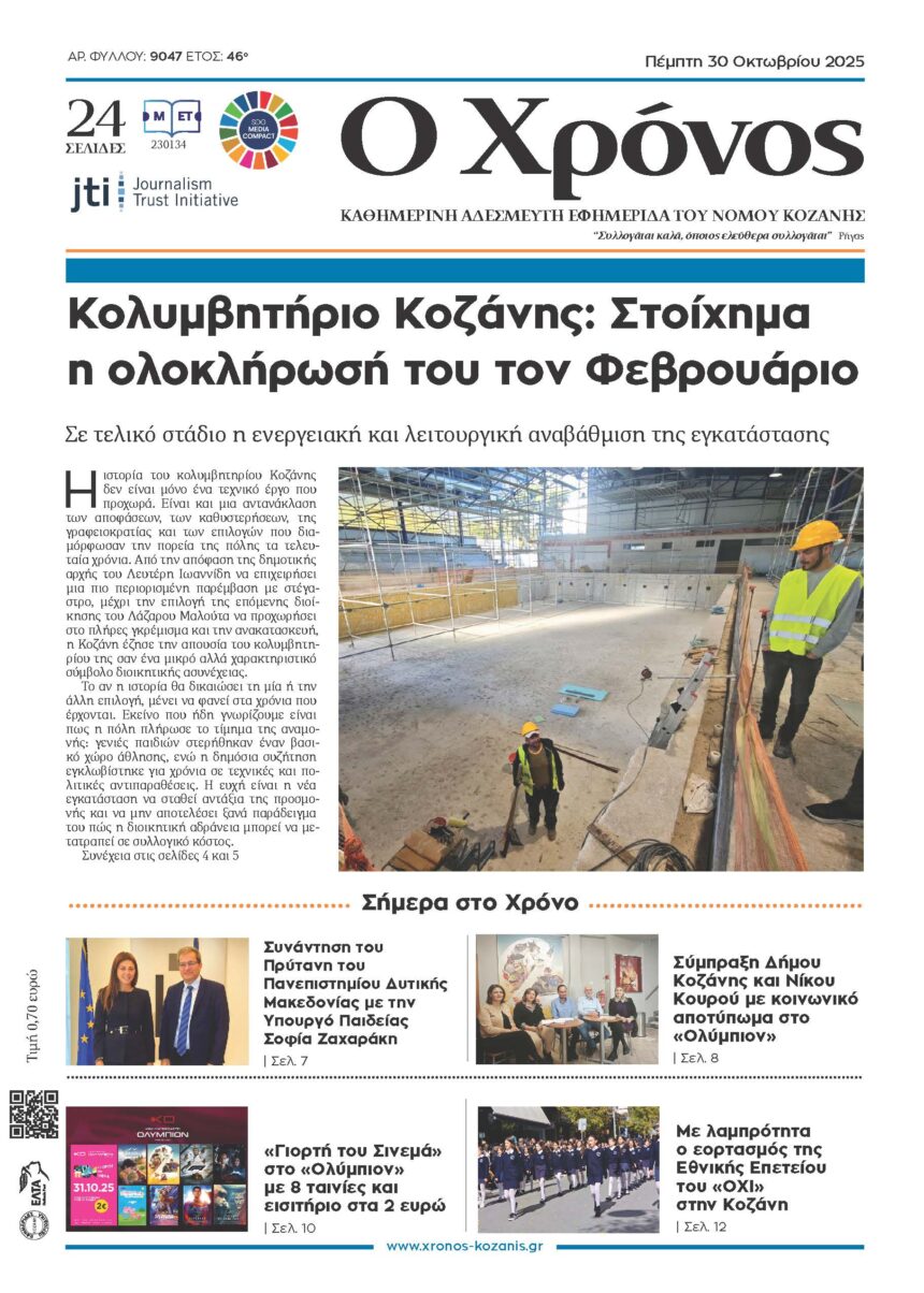 Η Δ.Ε.Υ.Α. Κοζάνης ενημερώνει τους καταναλωτές τηλεθέρμανσης που διαμένουν ή δραστηριοποιούνται στις οδούς Ε. Βενιζέλου, Παγούνη, Μεγ. Αλεξάνδρου, Μακεδονομάχων, Πέλλης, Πλακοπίτη και Καρακάση, ότι λόγω της διαρροής που προέκυψε επί…