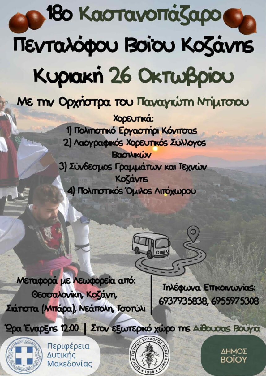 Ο Εκπολιτιστικός Σύλλογος Πενταλόφου διοργανώνει την Κυριακή 26 Οκτωβρίου το 18ο Καστανοπάζαρο Πενταλόφου, στον εξωτερικό χώρο της Αίθουσας «Βούγια». Η εκδήλωση ξεκινά στις 12:00 με την ορχήστρα του Παναγιώτη Ντίμτσιου.…