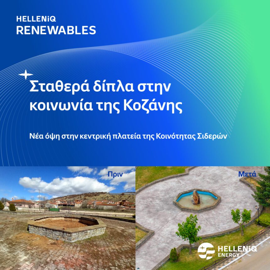 Με τη συνδρομή της HELLENiQ Renewables, θυγατρικής της HELLENiQ ENERGY, ολοκληρώθηκαν στην Κοινότητα Σιδερών, του Νομού Κοζάνης, οι εργασίες ανάπλασης της κεντρικής πλατείας, που είχε υποστεί σημαντική φθορά λόγω των…