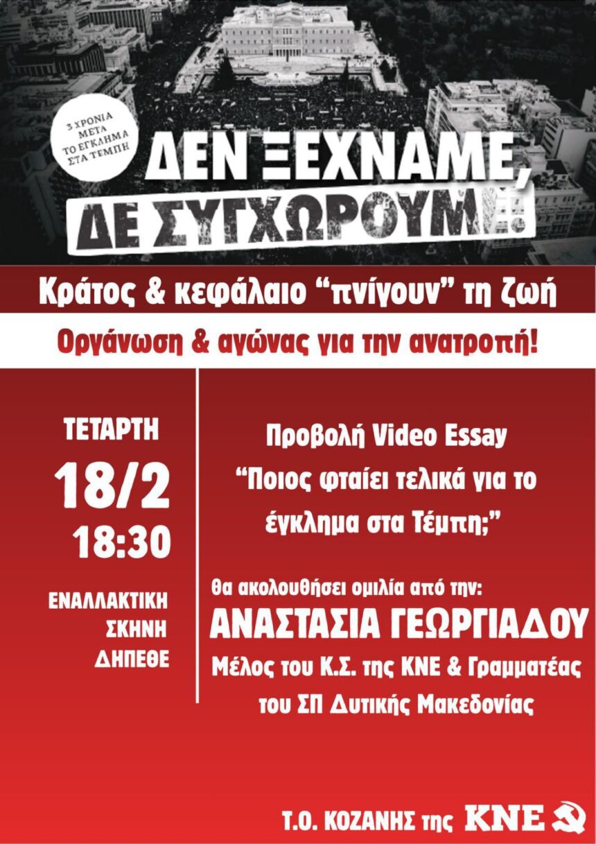 Κάλεσμα σωματείων το Σάββατο 28 Φεβρουαρίου στις 17:00 στην κεντρική πλατεία