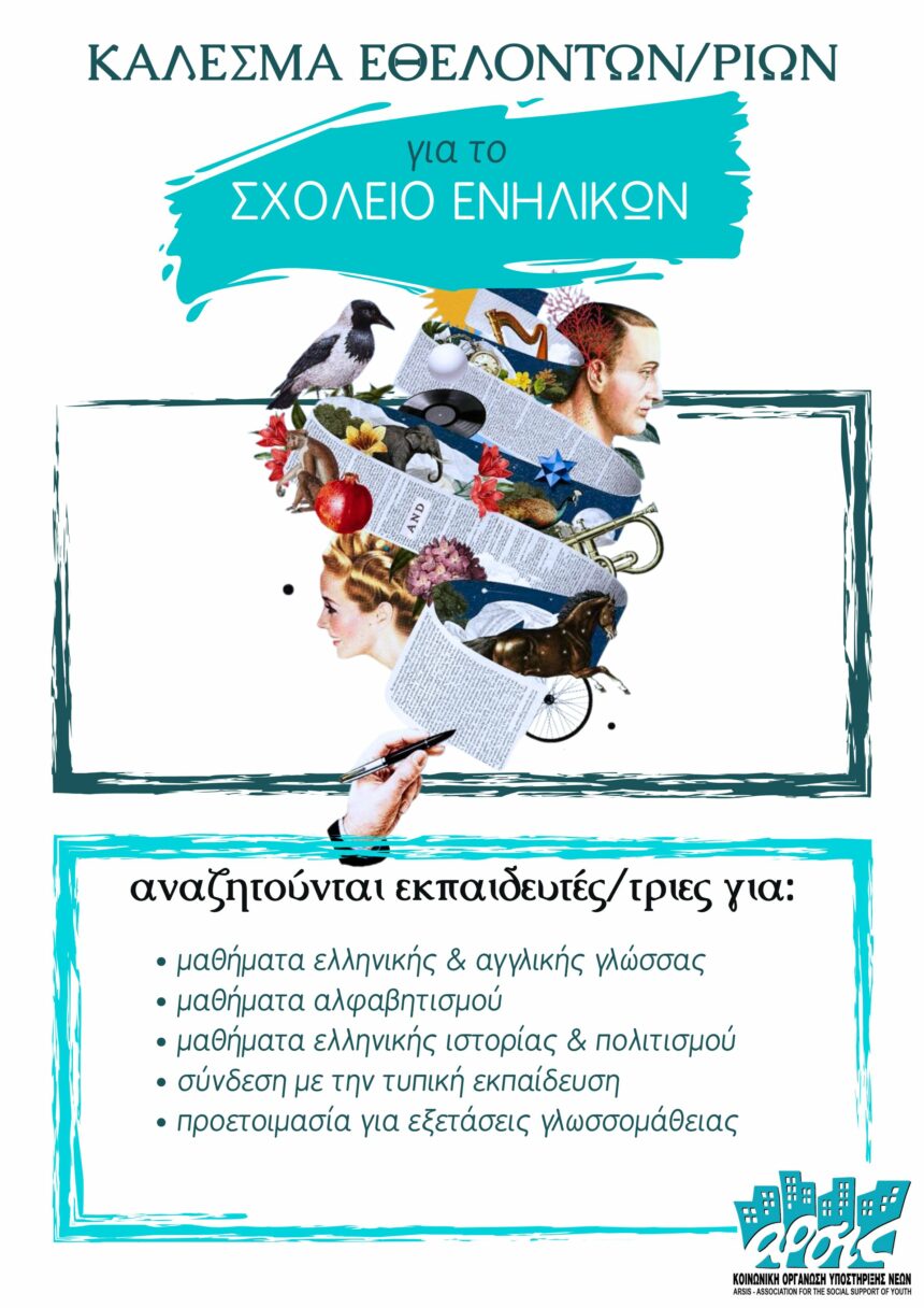 Το Σχολείο Ενηλίκων της ΑΡΣΙΣ Κοζάνης απευθύνει κάλεσμα σε εθελοντές και εθελόντριες που επιθυμούν να συμβάλλουν ενεργά στην εκπαιδευτική και κοινωνική ένταξη ανθρώπων που χρειάζονται στήριξη. Η αναζήτηση αφορά εκπαιδευτικούς…