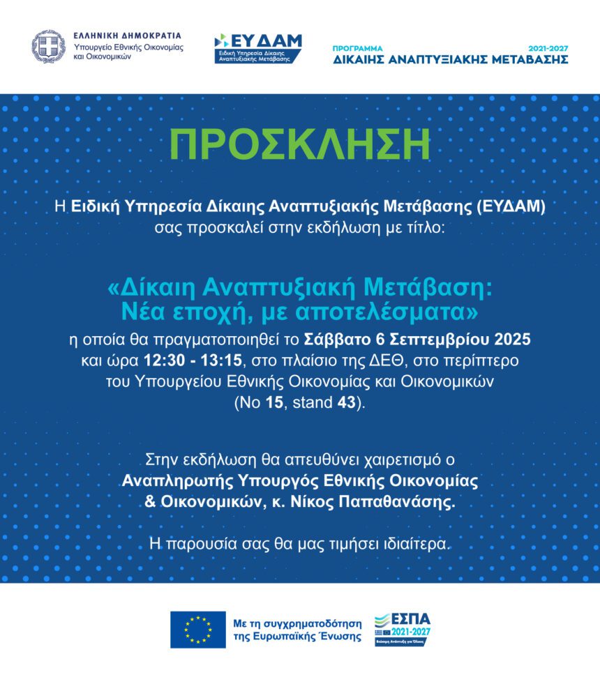 Παρουσία στην 89η Διεθνή Έκθεση Θεσσαλονίκης με εκδήλωση και περίπτερο από 6 έως 14 Σεπτεμβρίου