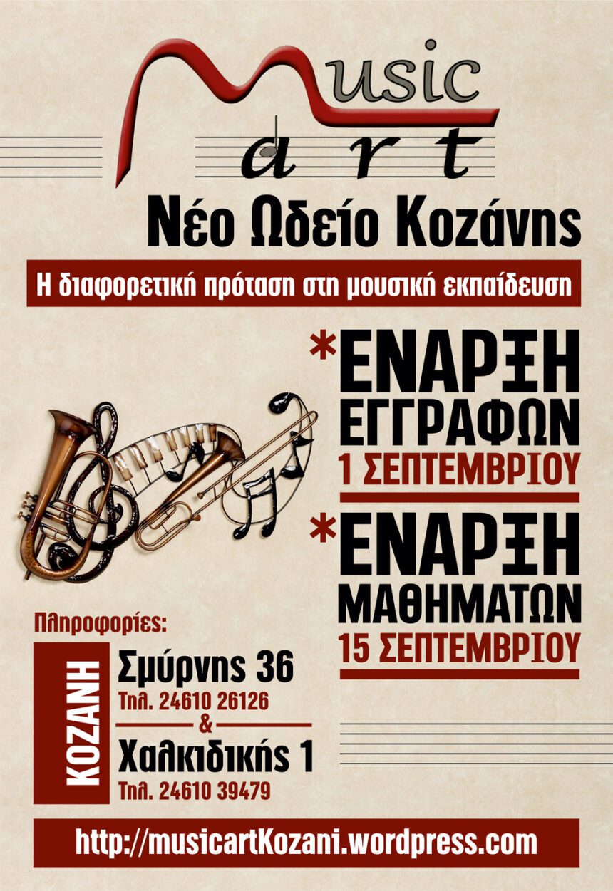 Ξεκίνησαν τη Δευτέρα 1η Σεπτεμβρίου οι εγγραφές στη Musicart- Νέο Ωδείο Κοζάνης για τη νέα μουσική χρονιά. Με όραμα, συνέπεια, νέες ιδέες σας περιμένουμε για να κατακτήσουμε τη γνώση της…