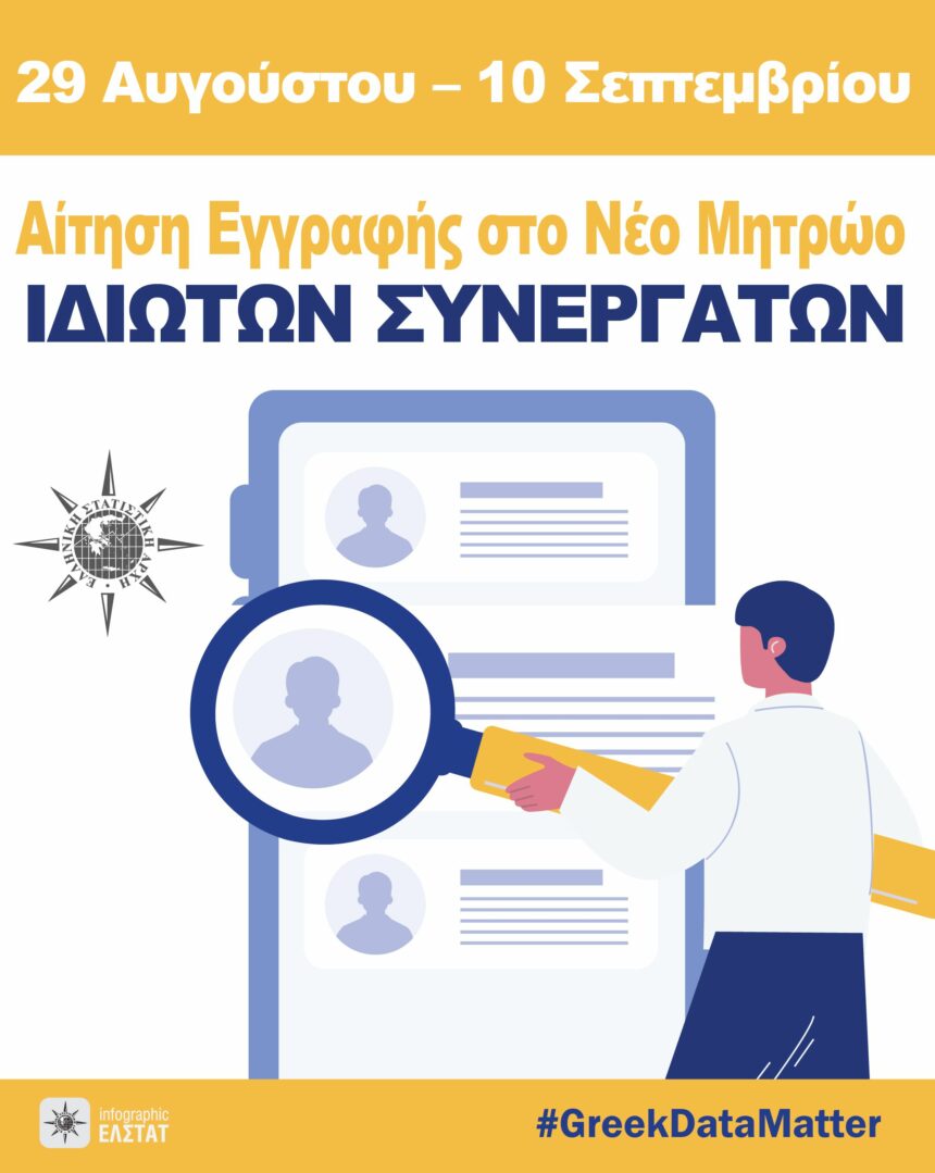 Αιτήσεις από 29 Αυγούστου έως 10 Σεπτεμβρίου – Συμμετοχή σε στατιστικές έρευνες