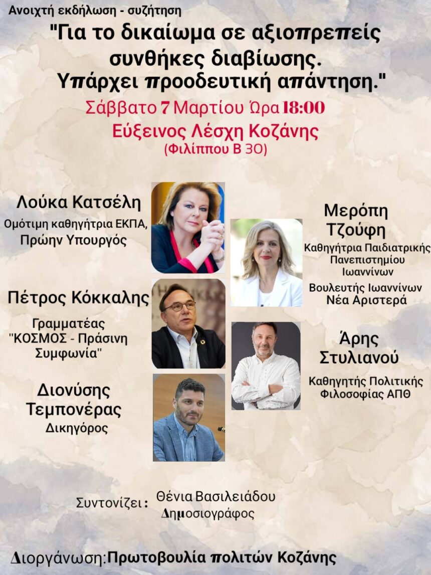 Συζήτηση το Σάββατο 7 Μαρτίου στην Εύξεινο Λέσχη Κοζάνης με πέντε εισηγητές