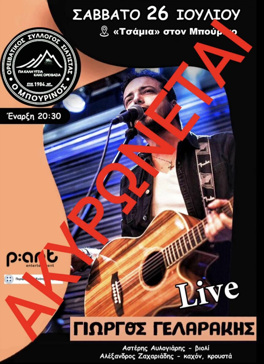 Λόγω του αυξημένου κινδύνου εκδήλωσης πυρκαγιάς (Κατηγορία Κινδύνου 3), η προγραμματισμένη εκδήλωση του Ορειβατικού Συλλόγου Σιάτιστας στο Μπούρινο, το Σάββατο 26 Ιουλίου, ΑΚΥΡΩΝΕΤΑΙ. Η ασφάλεια των συμμετεχόντων και η προστασία…
