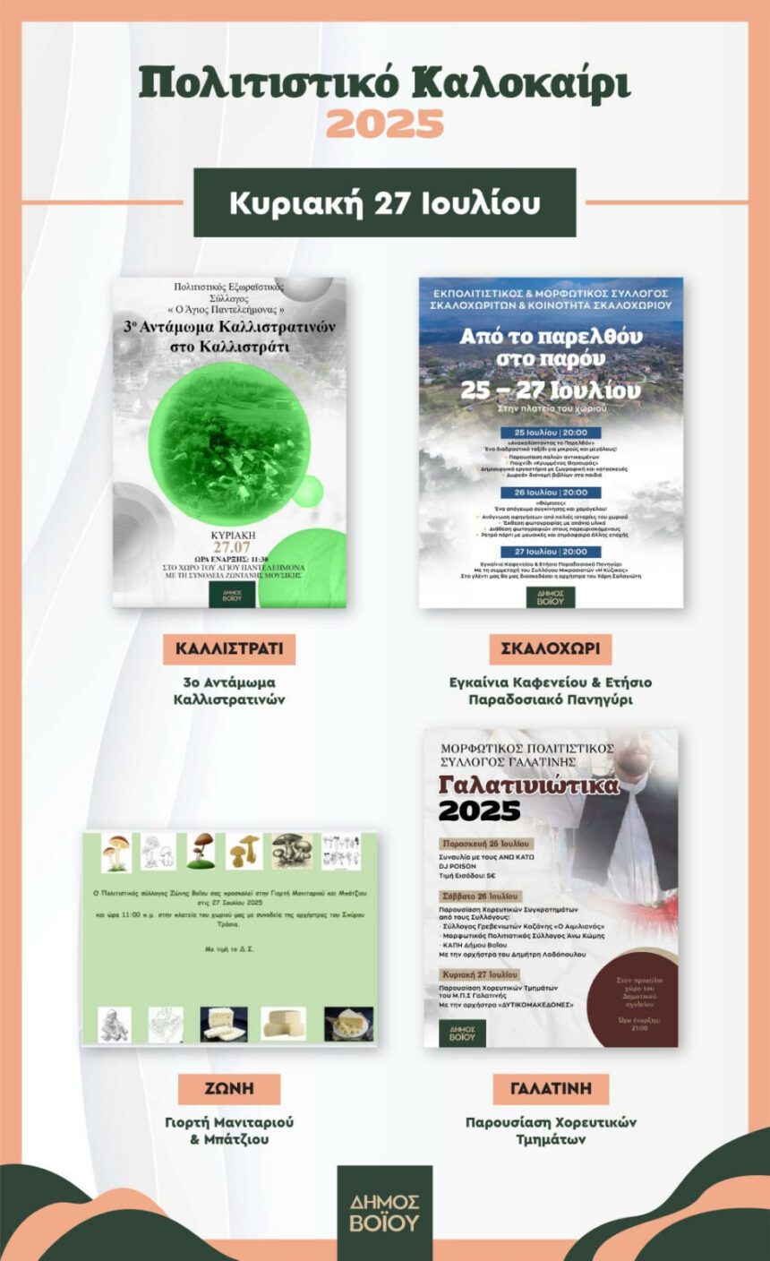 - 3ο Αντάμωμα Καλλιστρατινών στο Καλλιστράτι από τον Πολιτιστικό Εξωραϊστικό Σύλλογο «Ο Άγιος Παντελεήμονας» Με τη συνοδεία ζωντανής μουσικής Ώρα έναρξης: 11:30 π.μ. Στο χώρο του Αγίου Παντελεήμονα - Εγκαίνια…