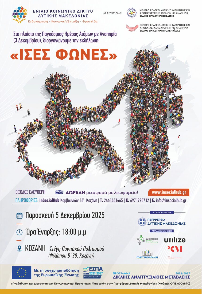 Παρασκευή 5 Δεκεμβρίου 2025 | 18:00 - 20:00 | Στέγη Ποντιακού Πολιτισμού, Κοζάνη Καλλιτεχνικό πρόγραμμα • Θεατρική παράσταση «Η Βαγγελίτσα» από το Ειδικό Εργαστήρι Κοζάνης, βασισμένη στο διήγημα της Έλλης…