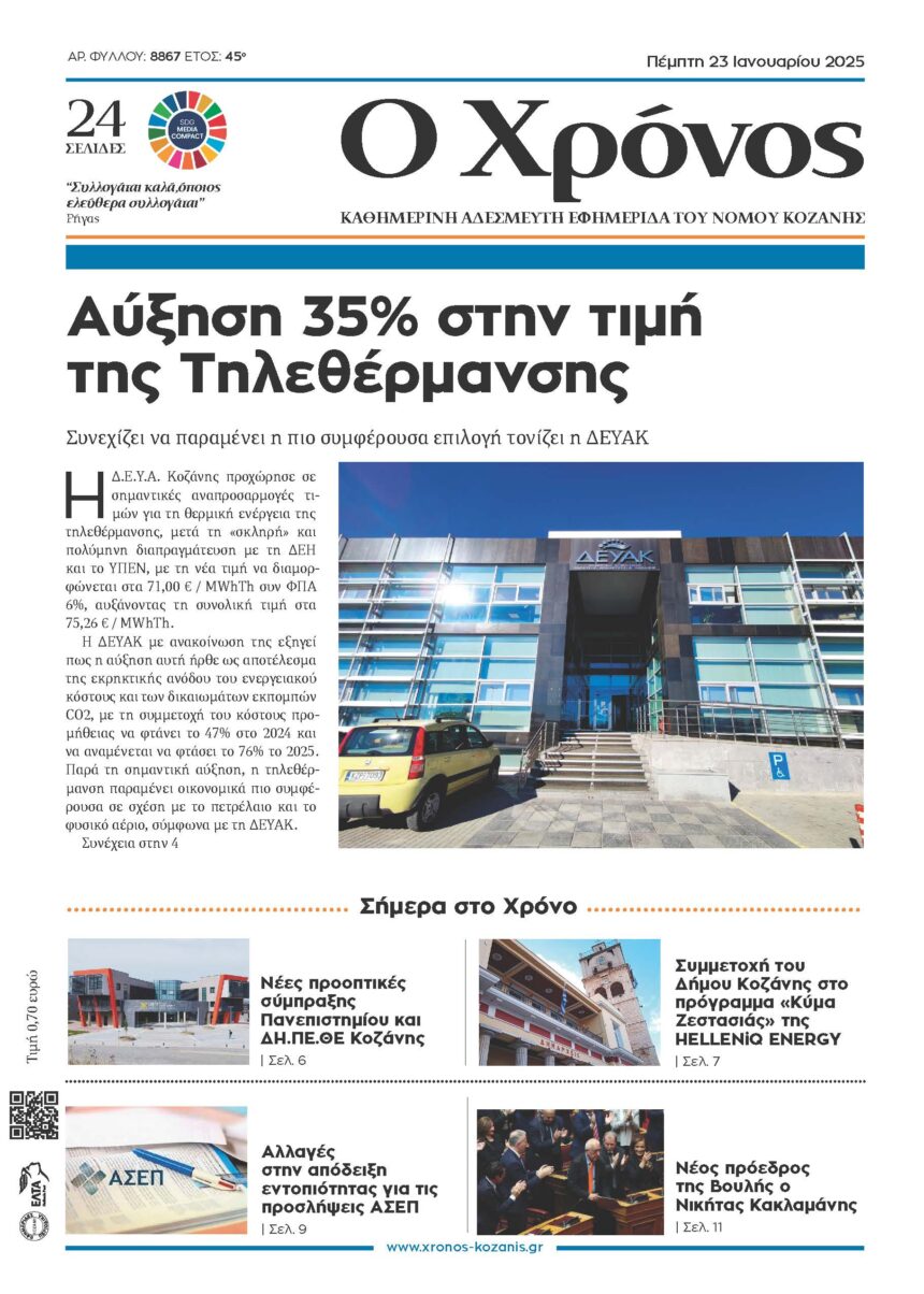 Για μια ακόμη χρονιά, ο Δήμος Κοζάνης συμμετέχει στο πρόγραμμα «Κύμα Ζεστασιάς» της HELLENiQ ENERGY, το οποίο, μέσω των θυγατρικών εταιρειών της ΕΛΛΗΝΙΚΑ ΠΕΤΡΕΛΑΙΑ και ΕΚΟ, προσφέρει δωρεάν πετρέλαιο θέρμανσης…