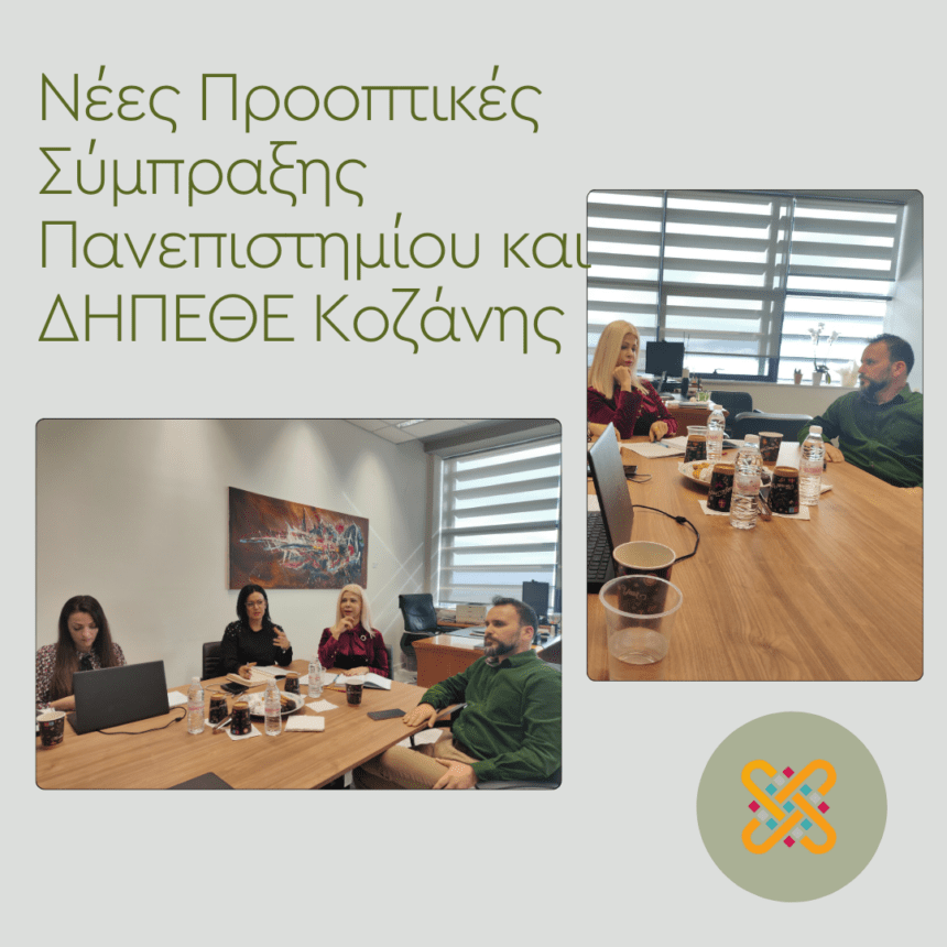 Στο πλαίσιο συμπράξεων και δημιουργικών πρωτοβουλιών, πραγματοποιήθηκε συνάντηση μεταξύ της Αντιπρυτάνεως Εξωστρέφειας και Ολιστικής Μέριμνας του Πανεπιστημίου Δυτικής Μακεδονίας, καθηγήτριας Ελένης Γρίβα, και του Καλλιτεχνικού Διευθυντή του ΔΗ.ΠΕ.ΘΕ Κοζάνης, Στέλιου…