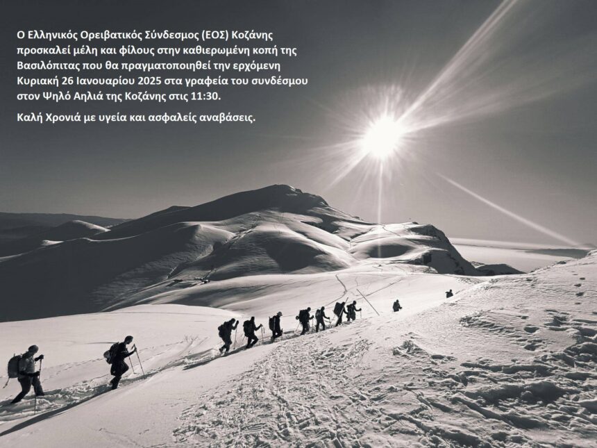 Ο Ελληνικός Ορειβατικός Σύνδεσμος (ΕΟΣ) Κοζάνης προσκαλεί μέλη και φίλους στην καθιερωμένη κοπή της Βασιλόπιτας που θα πραγματοποιηθεί την ερχόμενη Κυριακή 26 Ιανουαρίου 2025 στα γραφεία του συνδέσμου στον Ψηλό…