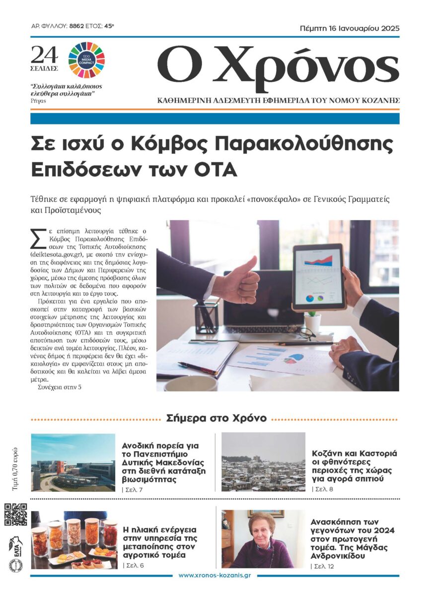 Τέθηκε σε εφαρμογή η ψηφιακή πλατφόρμα και προκαλεί «πονοκέφαλο» σε Γενικούς Γραμματείς και Προϊσταμένους Σε επίσημη λειτουργία τέθηκε ο Κόμβος Παρακολούθησης Επιδόσεων της Τοπικής Αυτοδιοίκησης (deiktesota.gov.gr), με σκοπό την ενίσχυση…