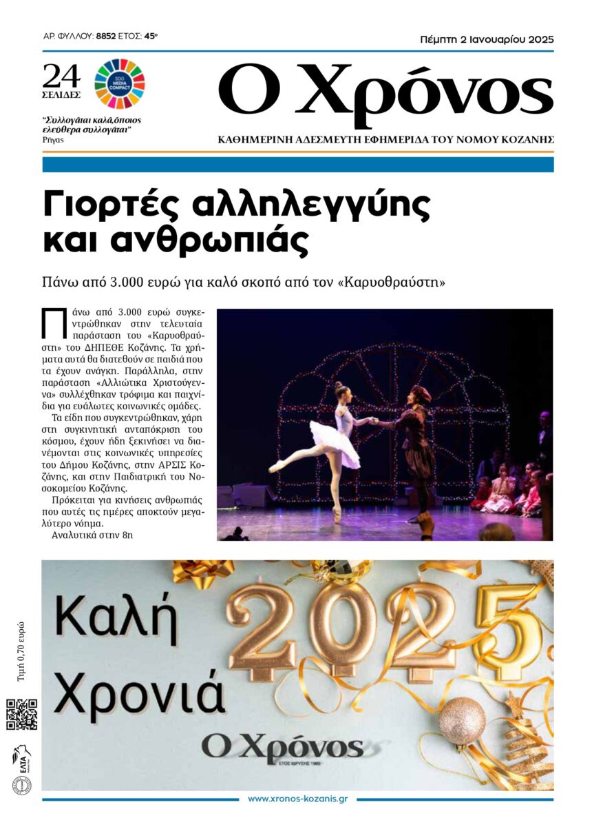 Συγκεντρώθηκαν πάνω από 3.000 ευρώ για παιδιά που χρειάζονται θεραπεία και δεκάδες δέματα με τρόφιμα και παιχνίδια για ευάλωτες κοινωνικές ομάδες Το Δημοτικό Περιφερειακό Θέατρο Κοζάνης αποχαιρετά το 2024 με…