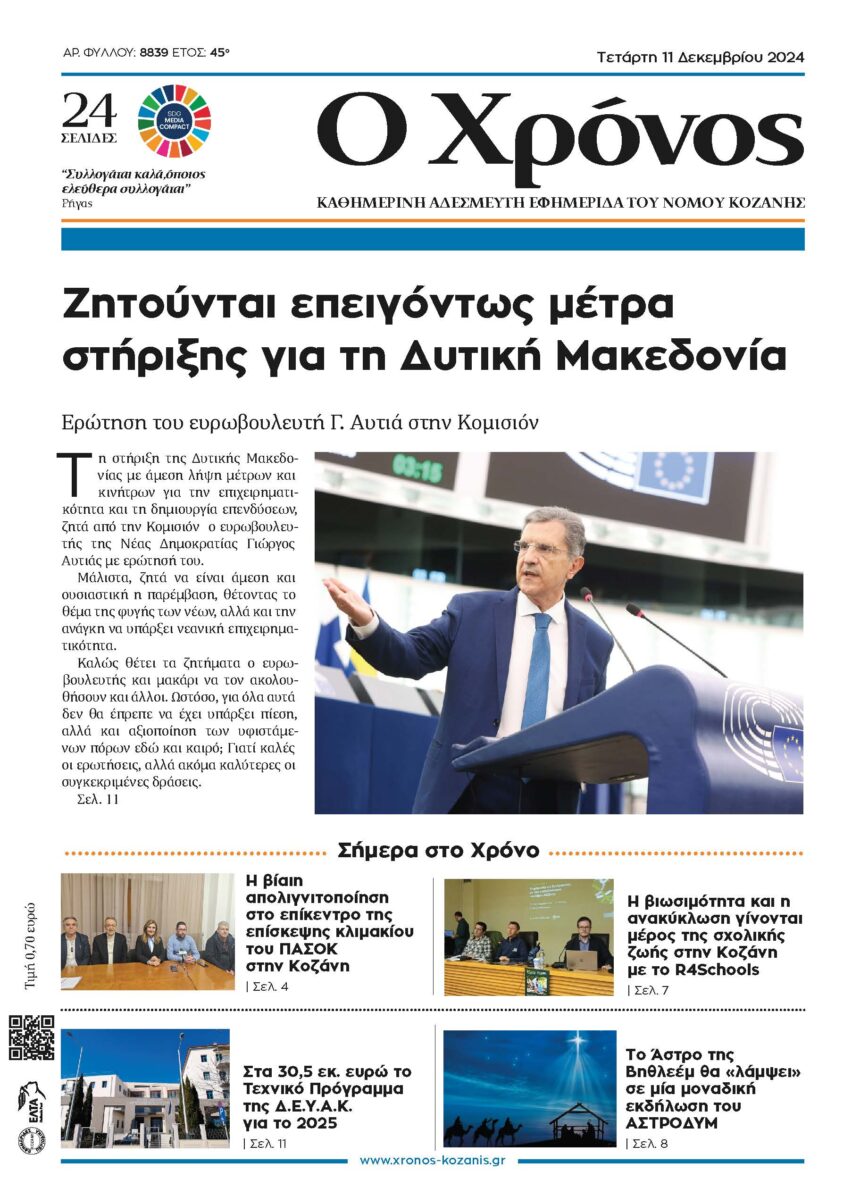 Ερώτηση του ευρωβουλευτή Γ. Αυτιά στην Κομισιόν Τη στήριξη της Δυτικής Μακεδονίας με άμεση λήψη μέτρων και κινήτρων για την επιχειρηματικότητα και τη δημιουργία επενδύσεων, ζητά από την Κομισιόν ο…