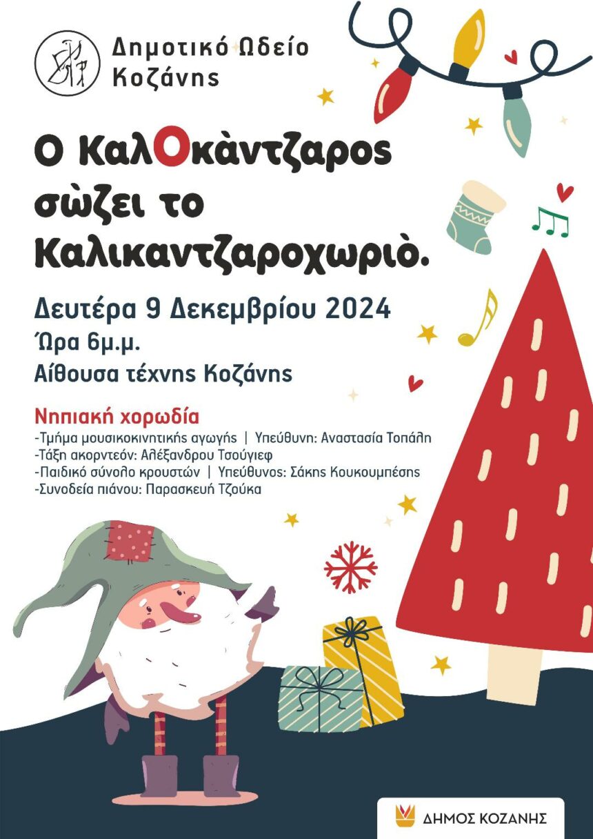 "Ο Καλοκάντζαρος σώζει το χωριό", μια μοναδική μουσικοθεατρική παράσταση από τους μικρούς καλλιτέχνες του Δημοτικού μας Ωδείου! Ελάτε να ανακαλύψουμε μαζί τι συμβαίνει όταν ένας Καλικάντζαρος αποφασίζει να ανέβει κρυφά…