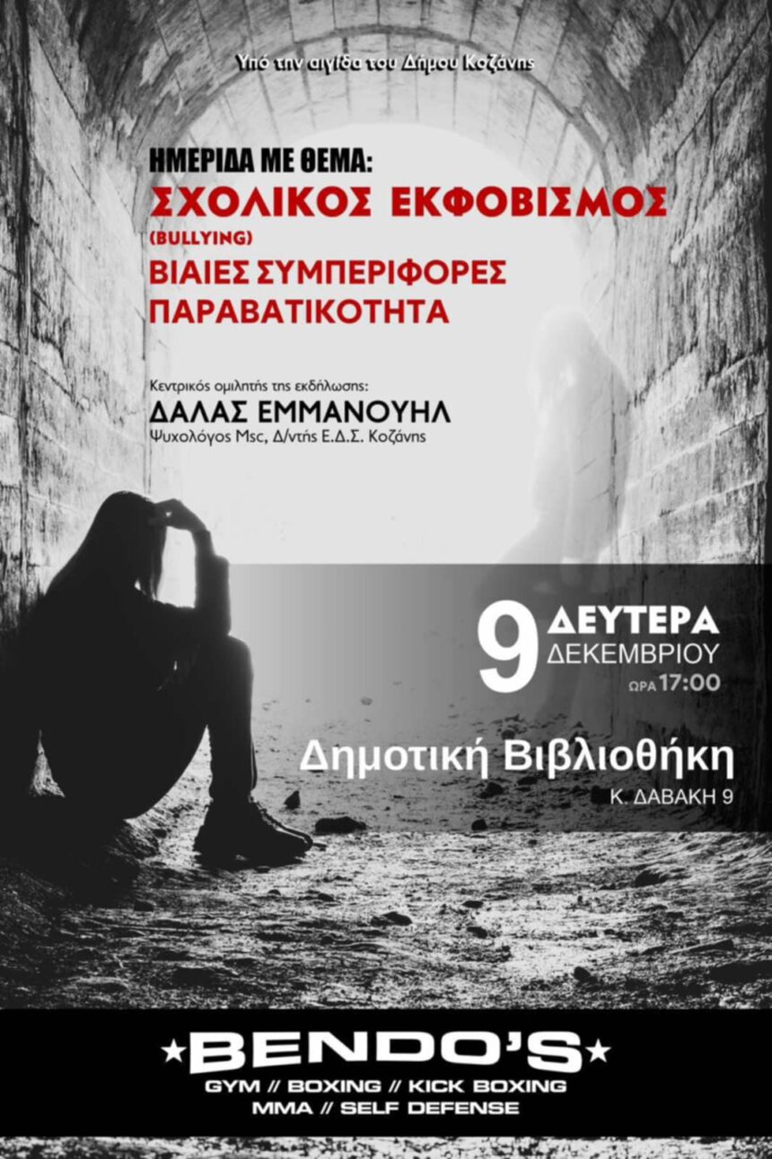 Μία σημαντική ενημερωτική ημερίδα για τον Σχολικό Εκφοβισμό θα πραγματοποιηθεί σήμερα στις 17:00 στην Κοβεντάρειο Δημοτική Βιβλιοθήκη Κοζάνης, με τη συμμετοχή διακεκριμένων εισηγητών. Μιλάμε για τον Ψυχολόγο Msc και Διευθυντή…
