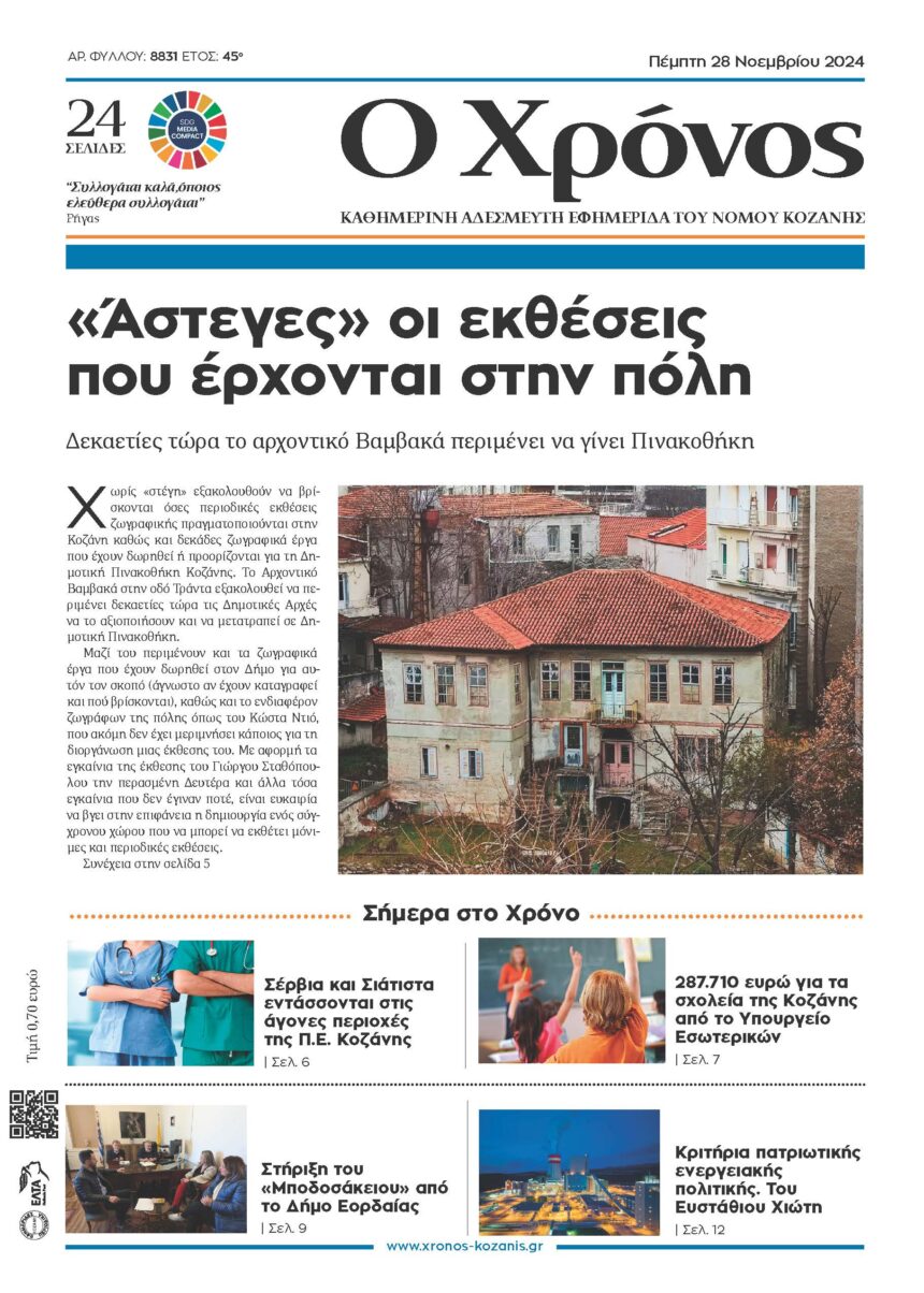 Η Δ.Ε.Υ.Α. Κοζάνης πληροφορεί όσους διαμένουν και δραστηριοποιούνται στο τμήμα της οδού Π. Μελά, από τη διασταύρωση της με την οδό Σολωμού έως τη διασταύρωση της με την οδό Καρατάσου…