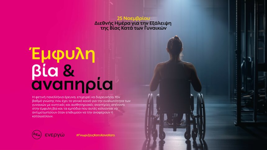 Φως στην αθέατη πραγματικότητα των θυμάτων έμφυλης βίας με αναπηρία, επιχειρεί να ρίξει η ΔΕΗ μέσα από την έρευνα «Έμφυλη βία και γυναίκες με κινητική και αισθητηριακή αναπηρία», με περισσότερα…