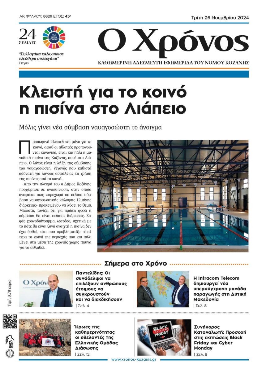 Από τη Δ.Ο.Υ Κοζάνης ανακοινώνεται ότι την Πέμπτη 28 Νοεμβρίου 2024 λόγω της ετήσιας τακτικής γενικής συνέλευσης των εφοριακών Δυτικής Μακεδονίας δεν θα πραγματοποιούνται συναλλαγές. Οι φορολογούμενοι μπορούν να εξυπηρετούνται…