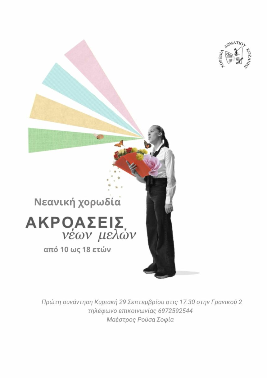 Η Εφηβική Χορωδία Δωματίου Κοζάνης ξεκινάει τις πρόβες της, αλλά μαζί και τις ακροάσεις για νέα μέλη! Αν είσαι 10 - 18 ετών έλα να τραγουδήσουμε, να μάθουμε αλλά και…
