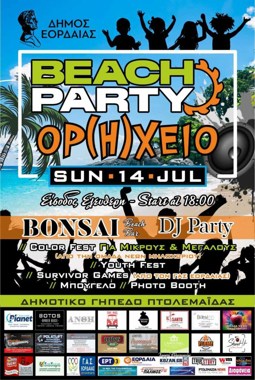 Η Πτολεμαΐδα ετοιμάζεται να υποδεχθεί το πιο δροσερό, καλοκαιρινό event της χρονιάς! Το “Beach Party "Ορ(Η)χείο" έρχεται στις 14 Ιουλίου 2024 στις 18:00 το απόγευμα, στο δημοτικό γήπεδο της Πτολεμαΐδας…