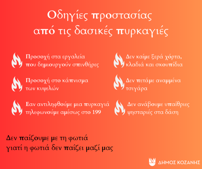 Στο πλαίσιο της αντιπυρικής περιόδου, που είναι σε πλήρη εξέλιξη, η Πολιτική Προστασία του Δήμου Κοζάνης συνιστά στους πολίτες να είναι ιδιαίτερα προσεκτικοί και να αποφεύγουν ενέργειες στην ύπαιθρο που…