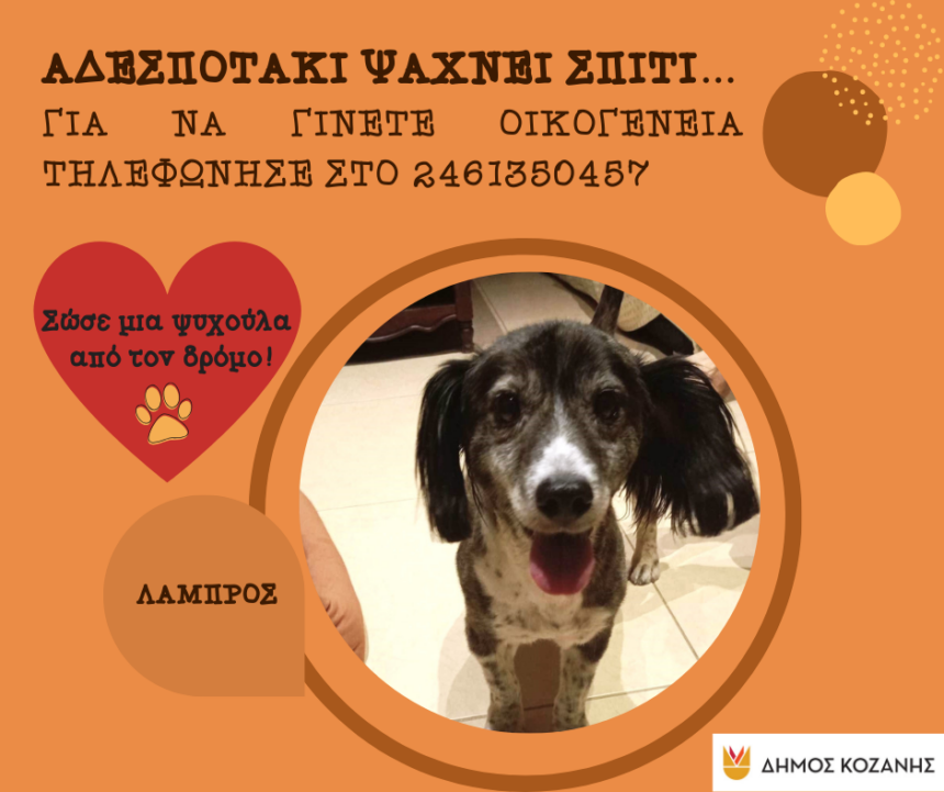 Ο Δήμος Κοζάνης απευθύνει κάλεσμα σε όσες και όσους επιθυμούν να υιοθετήσουν ένα αδέσποτο ζώο συντροφιάς, προκειμένου να του προσφέρουν ένα ζεστό σπιτικό με πολλή αγάπη. Στην παρούσα ανάρτηση, σας…