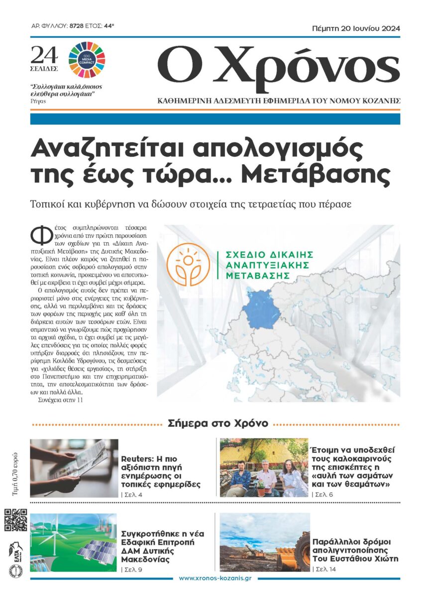 Φέτος συμπληρώνονται τέσσερα χρόνια από την πρώτη παρουσίαση των σχεδίων για τη "Δίκαιη Αναπτυξιακή Μετάβαση" της Δυτικής Μακεδονίας. Είναι πλέον καιρός να ζητηθεί η παρουσίαση ενός σοβαρού απολογισμού στην τοπική…