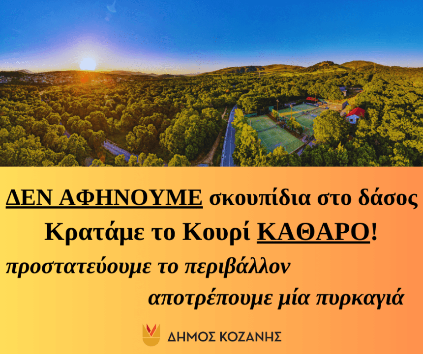 Ο Δήμος Κοζάνης επισημαίνει την ανάγκη προστασίας της πολύτιμής μας φύσης, καλώντας τους πολίτες να ΜΗΝ αφήνουν σκουπίδια σε δασικές εκτάσεις αφού πέρα από την προφανή περιβαλλοντική ζημιά του οικοσυστήματος,…