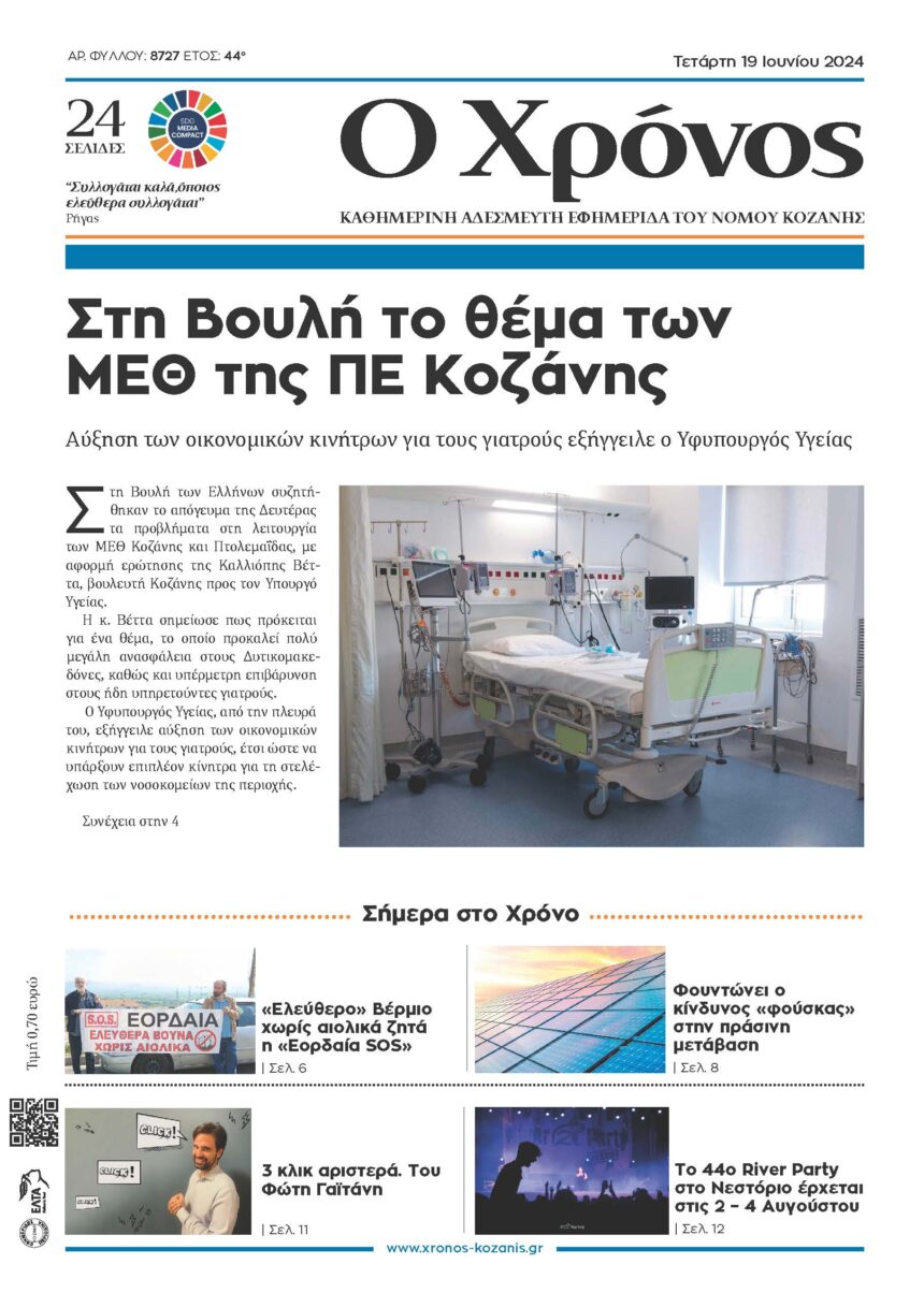 Ο Δήμος Κοζάνης ενημερώνει τους δημότες ότι λόγω των υψηλών θερμοκρασιών που επικρατούν στην περιοχή μας, ανοίγουν αύριο και μεθαύριο κλιματιζόμενες αίθουσες του Δήμου, για την προστασία των ευπαθών ομάδων.…