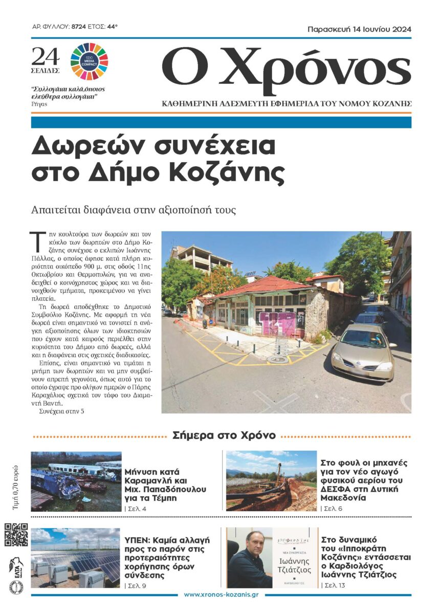Το Δημοτικό Συμβούλιο Κοζάνης, αποδέχτηκε τη δωρεά του διαθέτη Ιωάννη Πάλλα, όπως αυτή προσδιορίστηκε από τη δημόσια διαθήκη του. Ο Ιωάννης Πάλλας έφυγε από τη ζωή τον Ιούνιο του 2023…