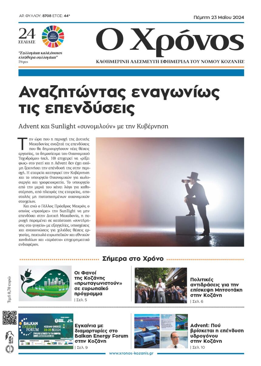 Advent και Sunlight «συνομιλούν» με την Κυβέρνηση Την ώρα που η περιοχή της Δυτικής Μακεδονίας αναζητά τις επενδύσεις που θα δημιουργήσουν νέες θέσεις εργασίας, το δημοσίευμα του Οικονομικού Ταχυδρόμου επιχειρεί να «ρίξει φως»…