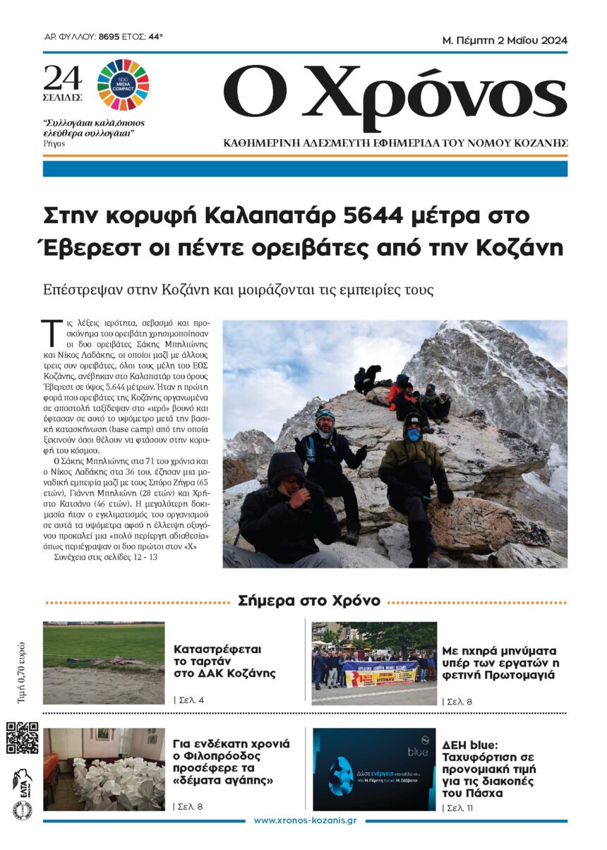 Επέστρεψαν στην Κοζάνη και μοιράζονται τις εμπειρίες τους Τις λέξεις ιερότητα, σεβασμό και προσκύνημα του ορειβάτη χρησιμοποίησαν οι δυο ορειβάτες Σάκης Μπηλιώνης και Νίκος Λαδάκης, οι οποίοι μαζί με άλλους…