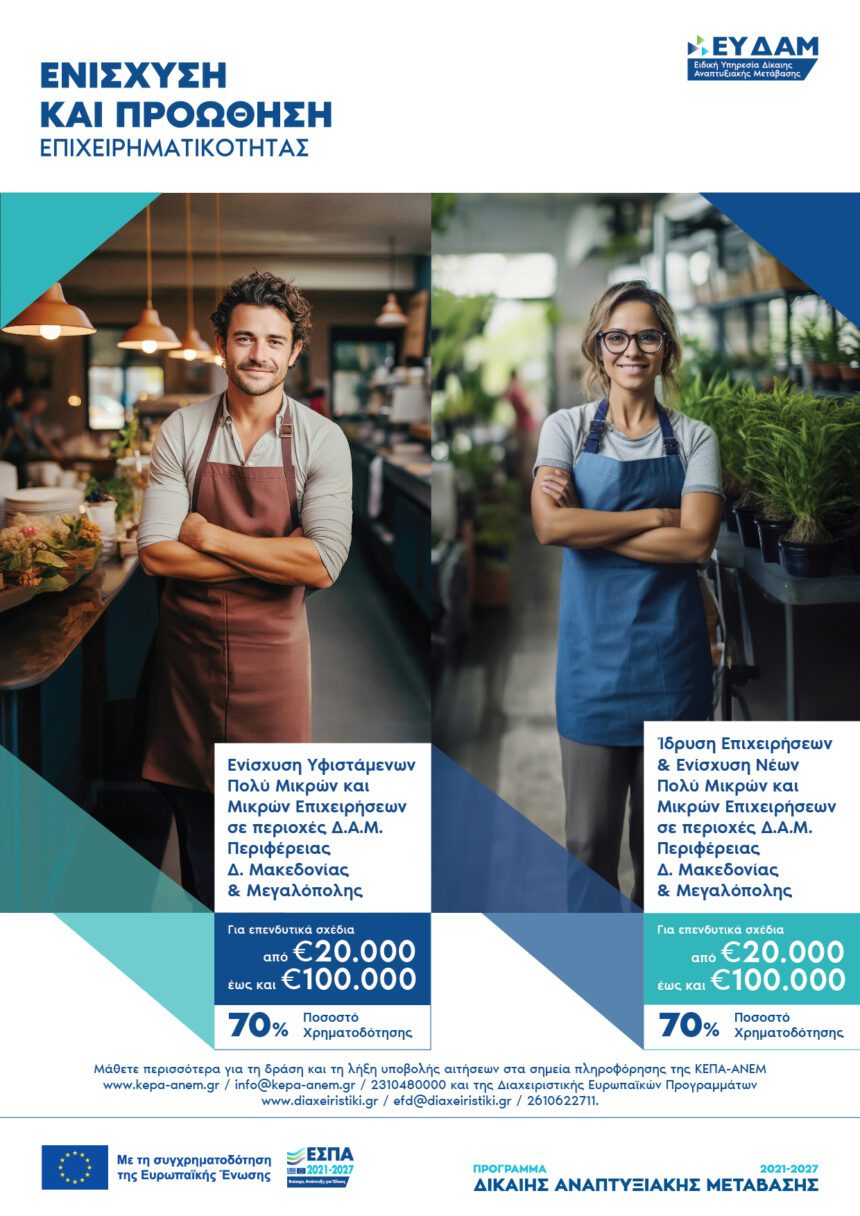 Ολοκληρώθηκε η καμπάνια ενημέρωσης σε τοπικά μέσα για τις δράσεις ενίσχυσης και προώθησης της επιχειρηματικότητας για υφιστάμενες, νέες και υπό σύσταση μικρές και πολύ μικρές επιχειρήσεις σε περιοχές Εδαφικών Σχεδίων…