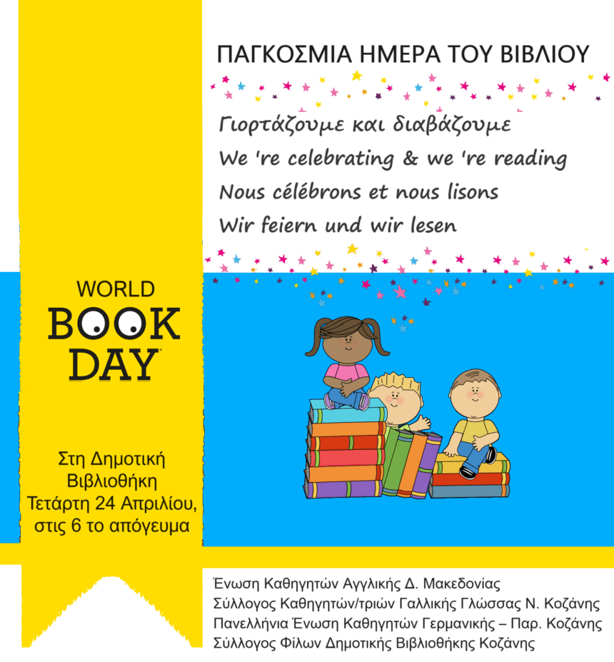 Τετάρτη 24 Απριλίου 2024, ώρα 6 το απόγευμα στη Δημοτική Βιβλιοθήκη Κοζάνης Σας καλούμε στην εκδήλωση που οργανώνουμε για να τιμήσουμε την Παγκόσμια Ημέρα του Βιβλίου. Γίνεται με τη συνεργασία…