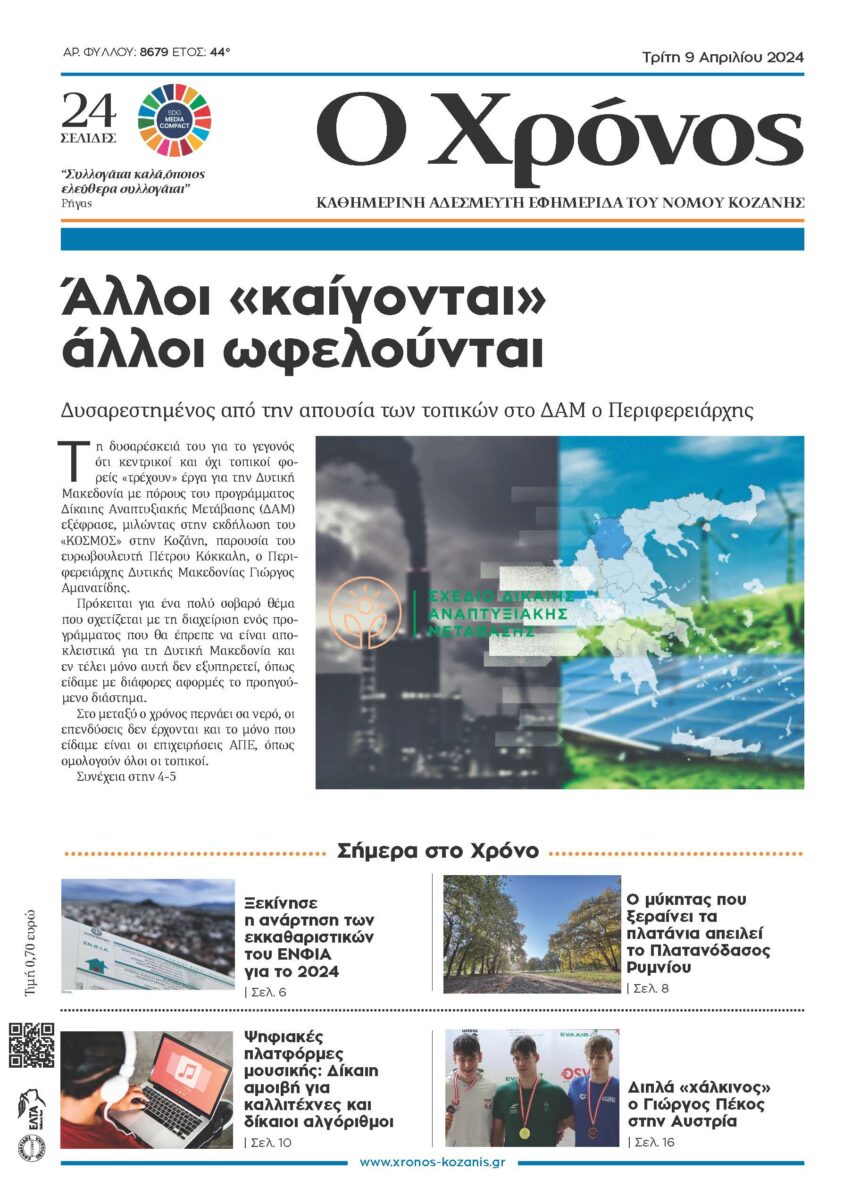 Δυσαρεστημένος από την απουσία των τοπικών στο ΔΑΜ ο Περιφερειάρχης Τη δυσαρέσκειά του για το γεγονός ότι κεντρικοί και όχι τοπικοί φορείς «τρέχουν» έργα για την Δυτική Μακεδονία με πόρους…