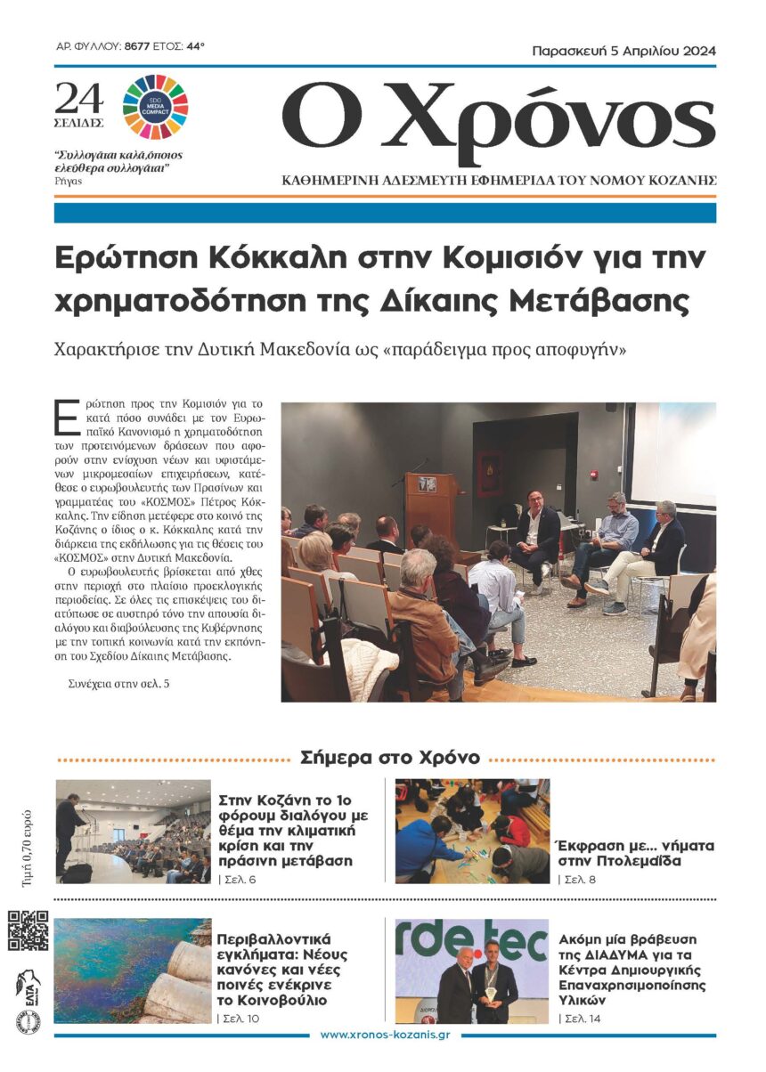 Παρουσιάστηκε η δράση «JustReDi» Το 1ο φόρουμ διαλόγου με θέμα την κλιματική κρίση και την πράσινη μετάβαση στην Περιφέρεια Δυτικής Μακεδονίας πραγματοποιήθηκε το πρωί της Πέμπτης στο Πανεπιστήμιο Δυτικής Μακεδονίας.…