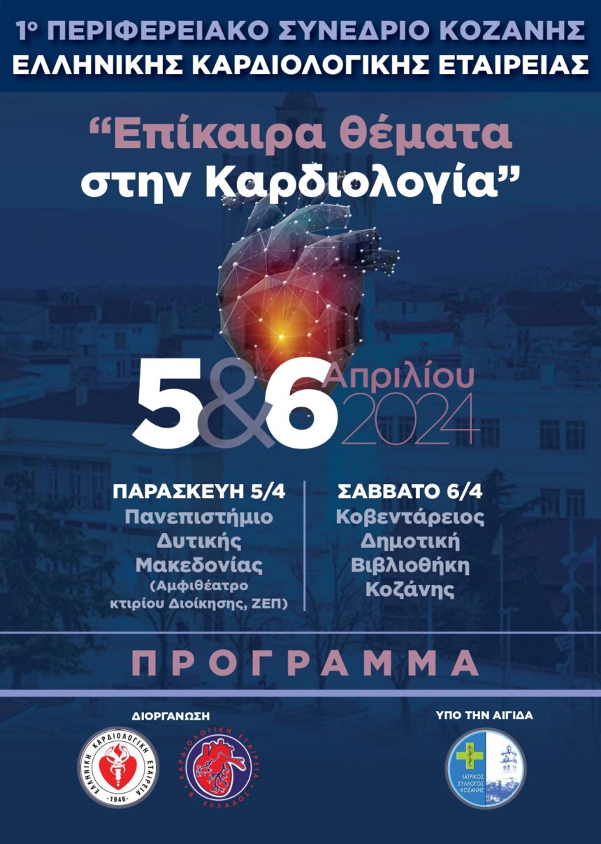Διήμερο καρδιολογικό συνέδριο Η Κοζάνη επιλέχθηκε ως η πόλη που θα φιλοξενήσει το πρώτο Περιφερειακό Συνέδριο Καρδιολογίας που διοργανώνεται από την Ελληνική Καρδιολογική Εταιρεία και την Καρδιολογική Εταιρεία Βορείου Ελλάδος…