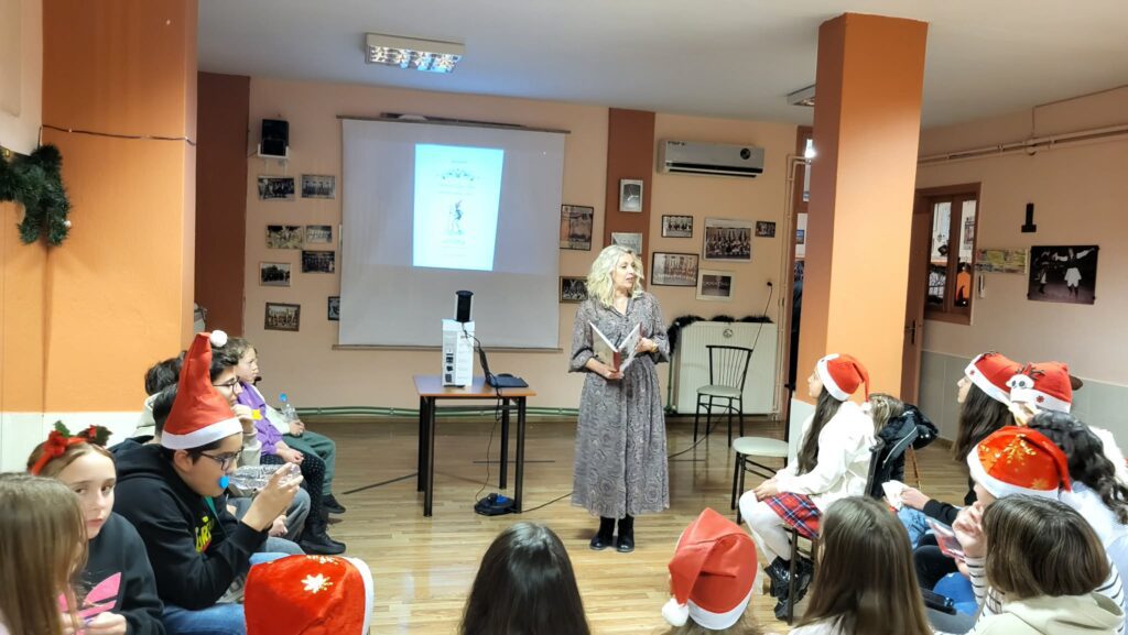 Στο πλαίσιο της γιορτής παρουσιάστηκε το παιδικό παραμύθι της Ζωής Γκούντα «Καλικάντζαρος εδώ… καλικάντζαρος εκεί…», με διαδραστικό και ευχάριστο τρόπο, που συνδύασε την αφήγηση με τη μουσική και στοιχεία της λαϊκής παράδοσης. Τα παιδιά συμμετείχαν ενεργά, παίζοντας και χορεύοντας, ενώ με ενθουσιασμό πήραν μέρος και στο παιχνίδι Secret Santa.