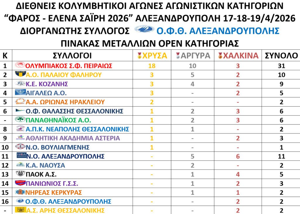 Με απολογισμό 13 μεταλλίων ολοκλήρωσε τη συμμετοχή της η Κολυμβητική Ένωση Κοζάνης στο Διεθνές Μίτινγκ «Φάρος – Έλενα Σαΐρη», που πραγματοποιήθηκε στην Αλεξανδρούπολη, επιβεβαιώνοντας τη σταθερά ανοδική πορεία των αθλητών της.