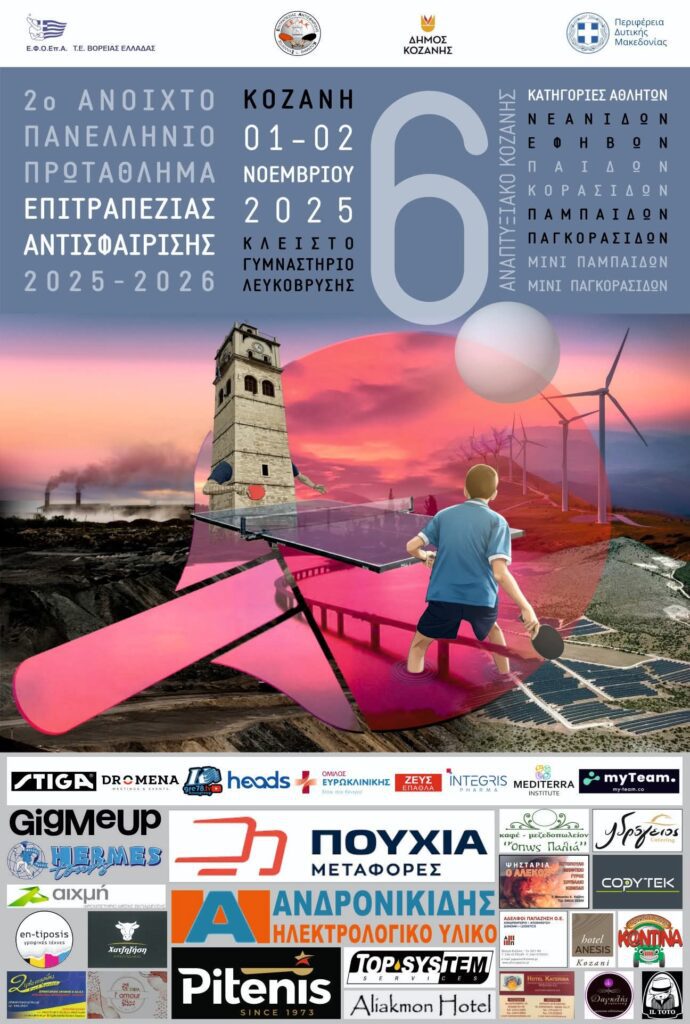 Η σειρά των αναπτυξιακών τουρνουά της Ε.Φ.Ο.Επ.Α. για την περίοδο 2025-2026 συνεχίζεται στην Κοζάνη, η οποία αύριο 1 και μεθαύριο 2 Νοεμβρίου φιλοξενεί στο κλειστό γυμναστήριο Λευκόβρυσης το 2ο όπεν της χρονιάς και το 6ο δικό της. Μετά την έναρξη στην Αθήνα για το τουρνουά του Πέρα, η Κοζάνη, με τη διαχρονική αγάπη της για την επιτραπέζια αντισφαίριση και την αναγνώριση της πολυετούς προσπάθειάς της, είναι έτοιμη να προσφέρει ένα άρτιο αθλητικό γεγονός.